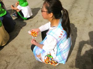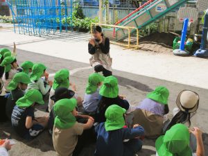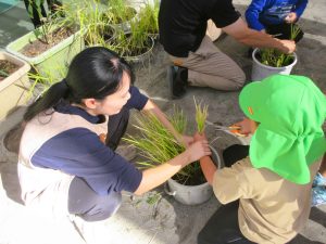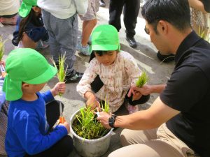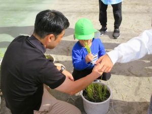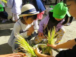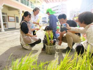 中央駅周辺のビル街で共研幼稚園は今年もお米を育てました。