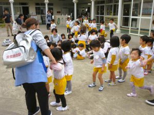 共研幼稚園では毎月必ず避難訓練を行っています。