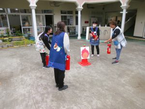 最後は毎月おこなう先生方の消火訓練・・・「先生がんばって・・・」