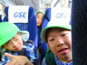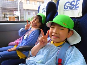共研幼稚園は鹿児島中央駅の近くなので大型バスで移動します・・・。