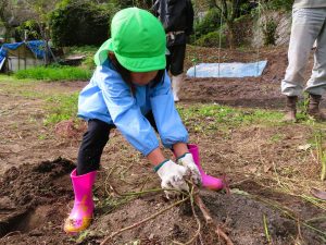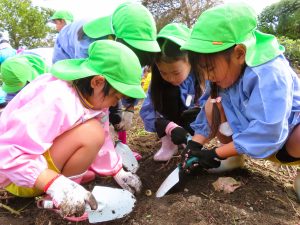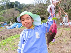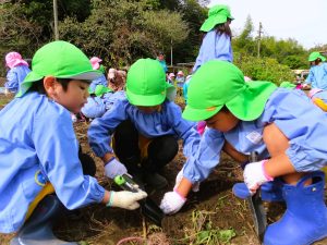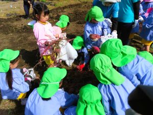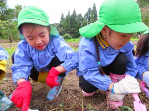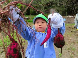 共研幼稚園では毎年、坂元町の農家さんにお願いしてサツマイモ畑を作っています・・・。