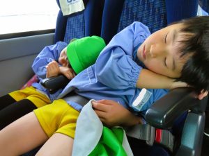 帰りのバスは静かでした・・・。おやすみ・・・。