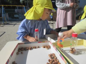 どんぐりを使ってマラカスが作れます・・・。
