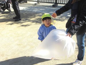 ビニル袋を使った風船遊びも大人気です・・・。
