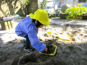 砂場遊びは定番・・・。やっぱり人気があります・・・。