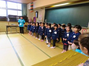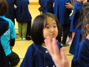 さくら組のお友だちがみんな揃って初めのご挨拶をどうぞ・・・