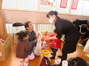 卒園児さんや在園児さんから譲っていただいた服や帽子、カバン等のお譲り会も同時開催しました・・・。