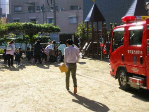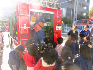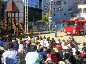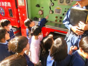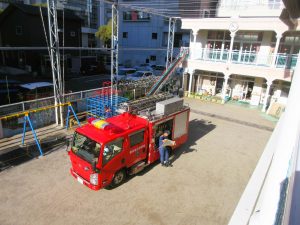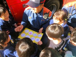 共研幼稚園に消防車がやってきました・・・。