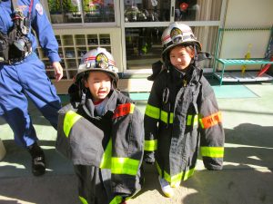 消防士さんの服も着せてもらいました・・・。