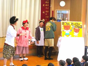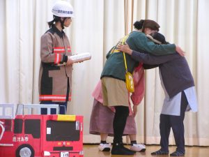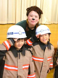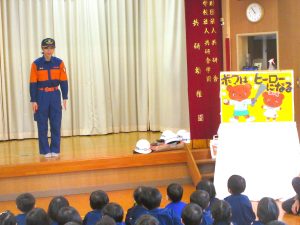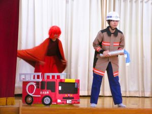 「今日は火の用心の劇をします・・・。みんな楽しんでね・・・。」