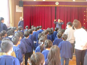 先生のピアノの伴奏に合わせて、今日は3番まで・・・。