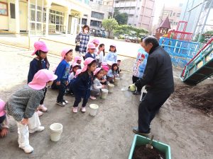 さくら組さんがチューリップを植えるのは一年ぶり・・・。