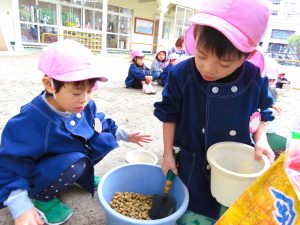 ビル街の真ん中にある共研幼稚園では自然体験を大切にしています・・・。