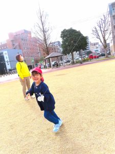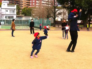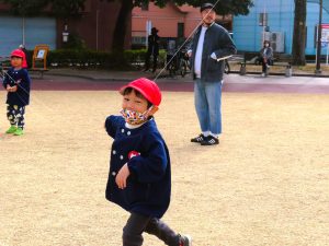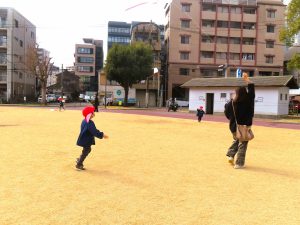 毎年、冬になると共研公園まで出かけて親子たこあげ大会が開かれます・・・。
